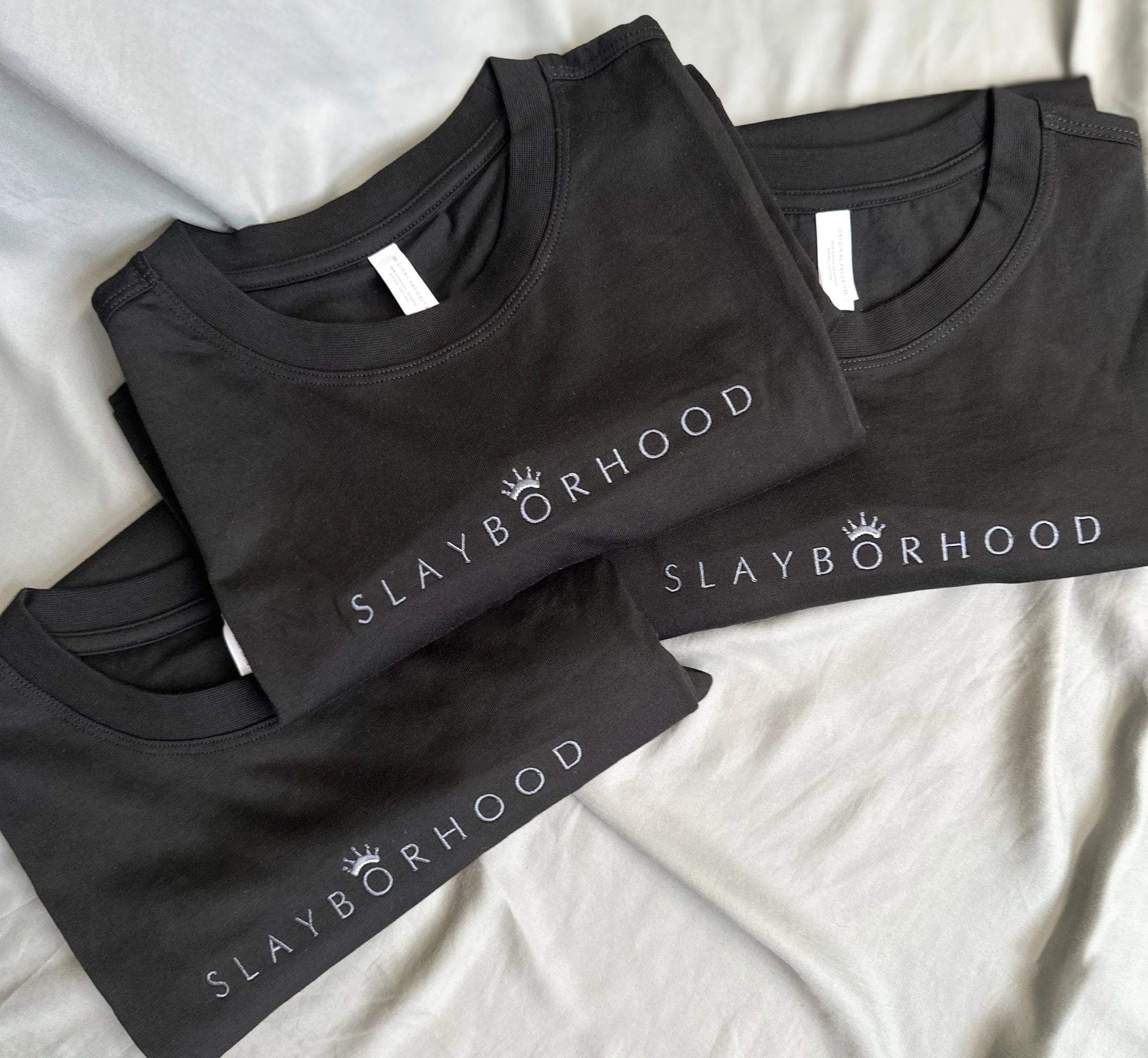 Diamonds Over Dirt Tee - Black $35.00 The CRIS Method Skincare Bag $42.00 Unbothered Slayborhood Crewneck - Black $55.00 Slayborhood Tee - Black $35.00 Go Big or Go Home Tee - Rose $35.00 Slayborhood Hoodie - Blue $65.00 Slayborcon 2024 Tee - White $35.00